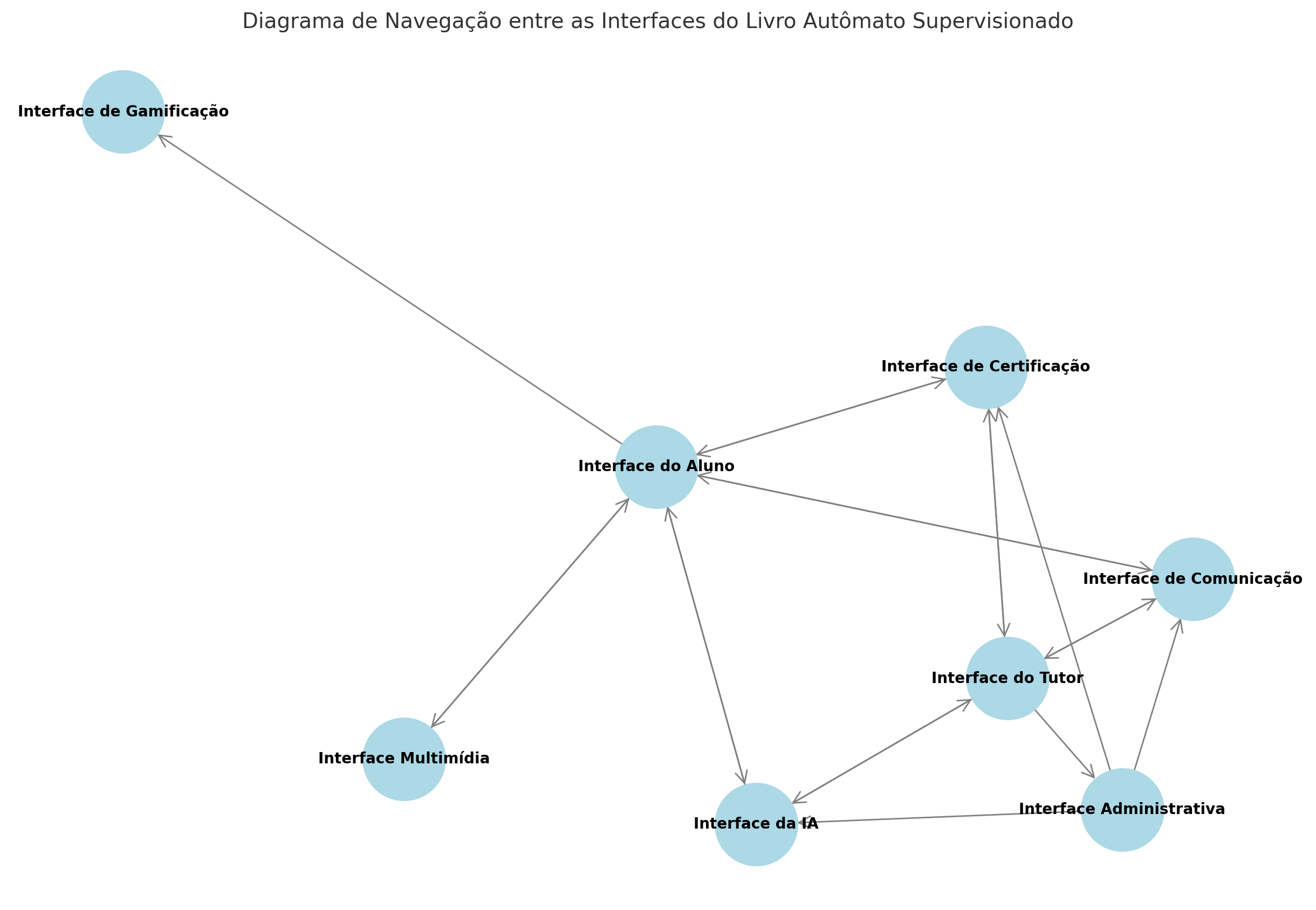 Os algoritmos de inteligência artificial desempenham um papel crucial na personalização da trilha de aprendizado no Livro Autômato Supervisionado. Abaixo estão os principais algoritmos usados para cada interface e suas funcionalidades: